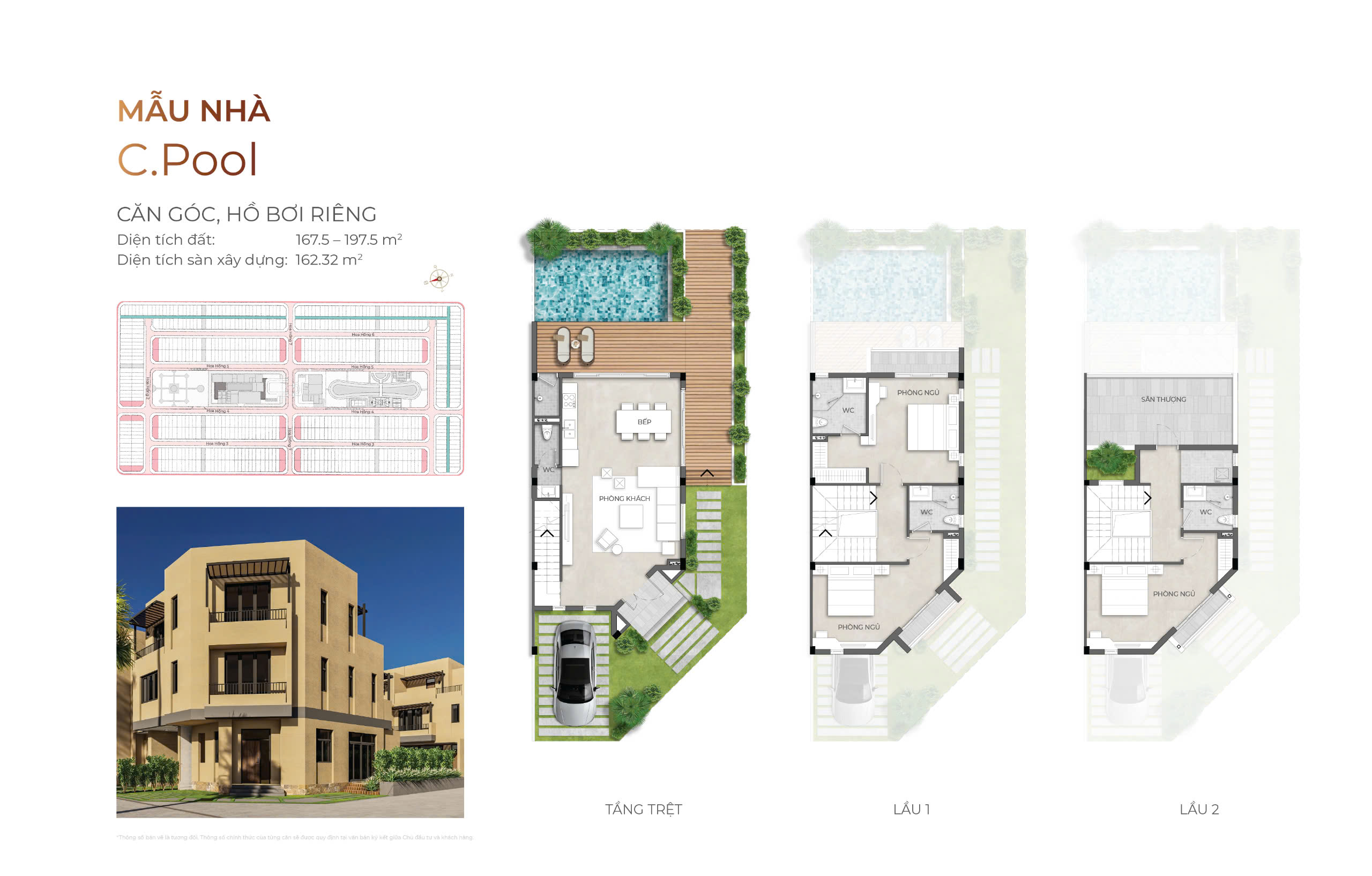 • Bàn giao: Hoàn thiện full nội thất + Hồ bơi