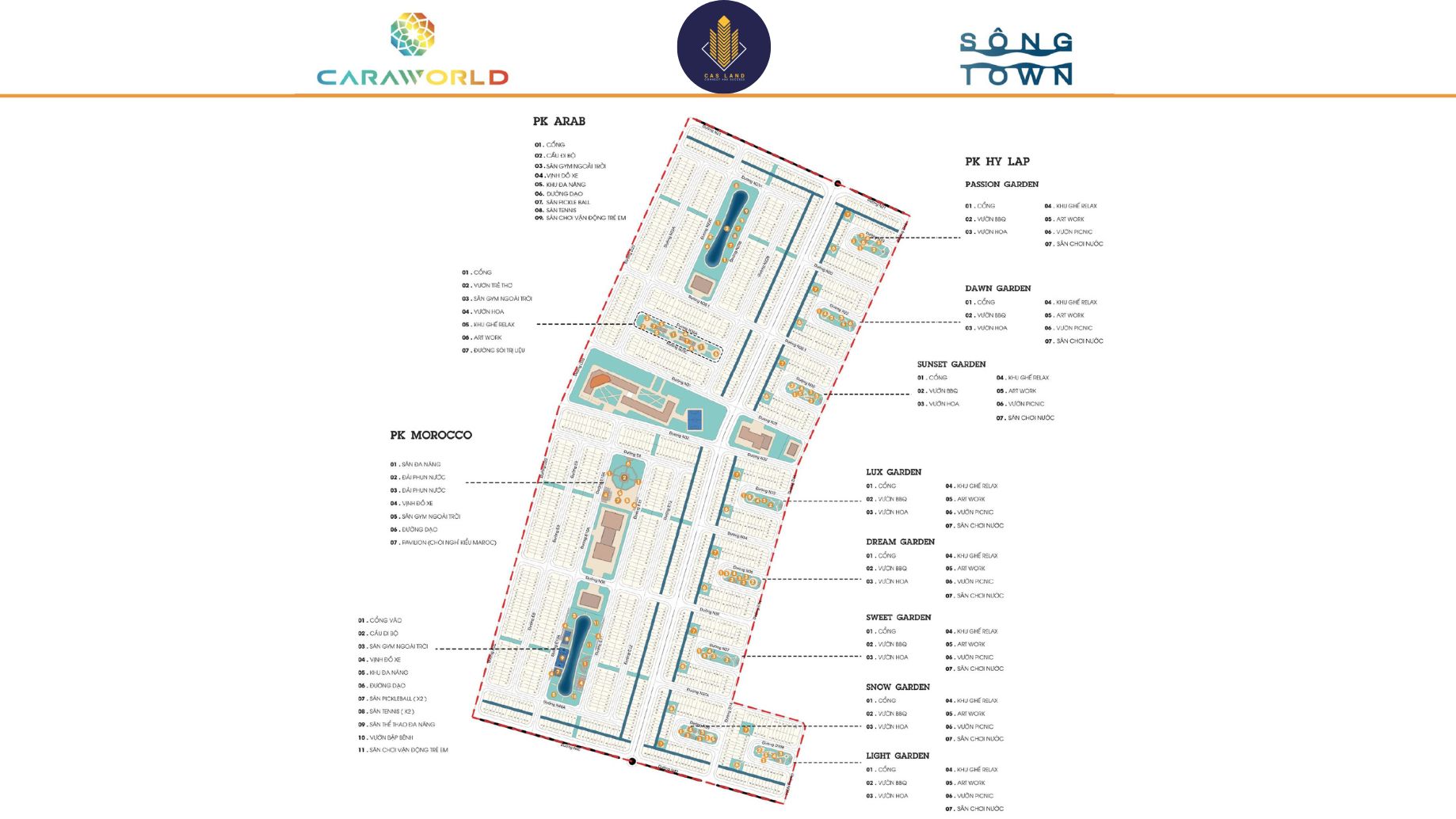 52,99ha - 1868 sản phẩm thuộc 3 phân khu: Ma Rốc, Ả Rập, Hy lạp