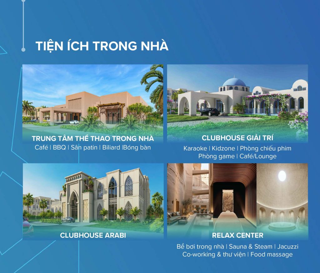 – Relax center: Bể bơi trong nhà, Jaccuzi, Co-working & thư viện, Foot massage…