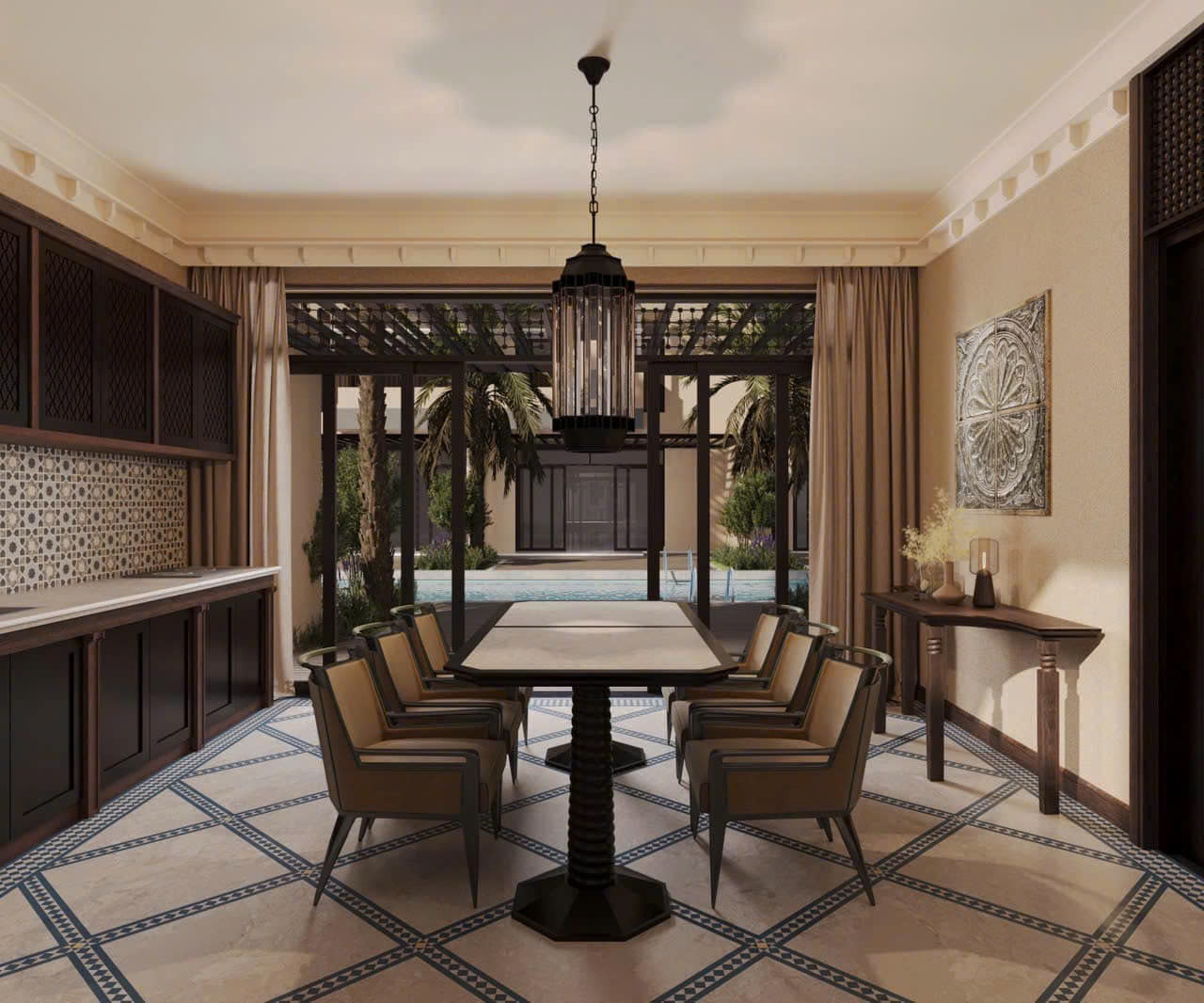 Nhà phố biển phong cách MA RỐC bàn giao full nội thất + hồ bơi